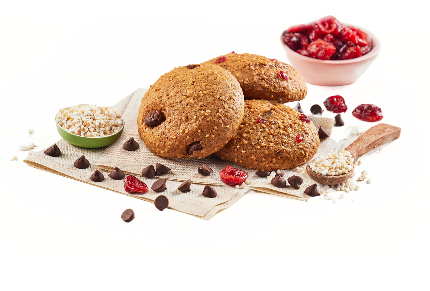 Crujientes galletas hechas con Amaranto y un mix irresistible de Frutos Rojos y Manzana Canela. ¡Un snack saludable y perfecto para llevar a todas partes!